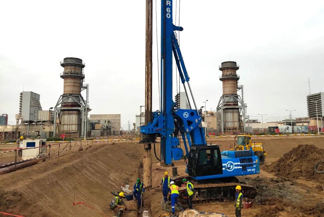 施工現(xiàn)場(chǎng)進(jìn)行旋挖鉆孔作業(yè)。